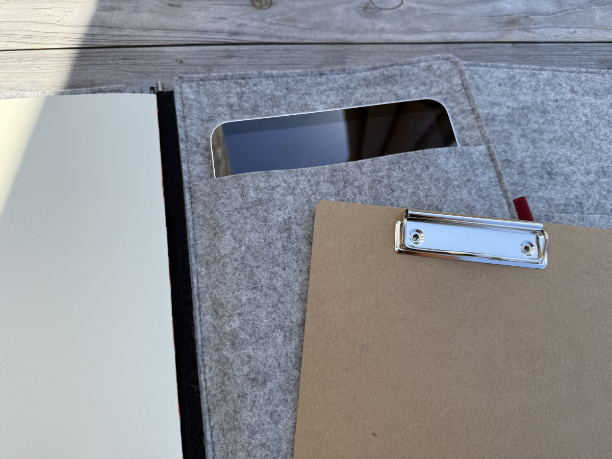 In eine hohe Quertasche passen ein Klemmbrett, der Kartonrücken eines DIN A4 Blocks oder ein Tablet bis