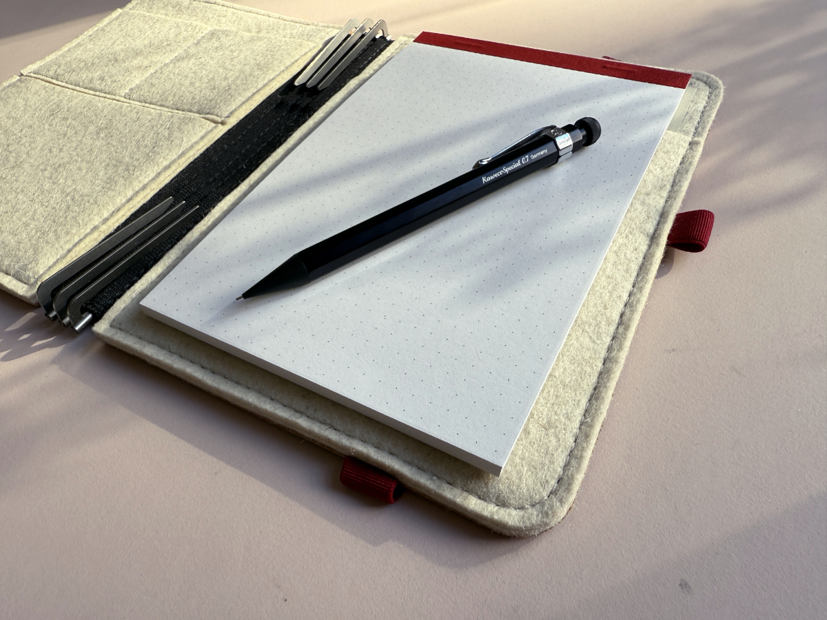 FORMAT M: Es ist das meistverkaufte Organizer-Format. Die Klammern fassen unsere Hefte im Format M, alle handelsüblichen DIN A5 Hefte sowie gefalzte,