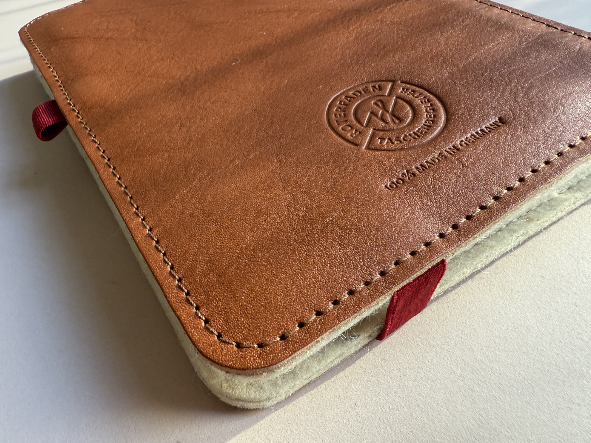Wir verwenden ein sehr hochwertiges und langlebiges Gummiband für Verschluss und Stiftschlaufe. Sollte das Band dennoch nach einigen Jahren starker Beanspruchung ausgedehnt sein, ersetzen wir es zum Selbstkostenpreis. Dazu findest Du den entsprechenden Artikel "Erneuerung Verschlussgummi und Stiftschlaufe" in unserem Webshop.