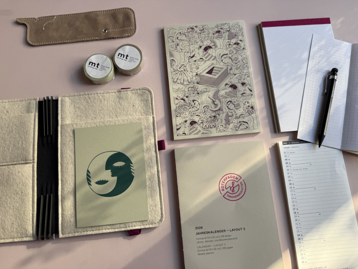 Alle Formate unserer TASCHENBEGLEITER und unseres HEFTSORTIMENTS findest Du in der Größentabelle. Dieser TASCHENBEGLEITER ist erhältlich in: