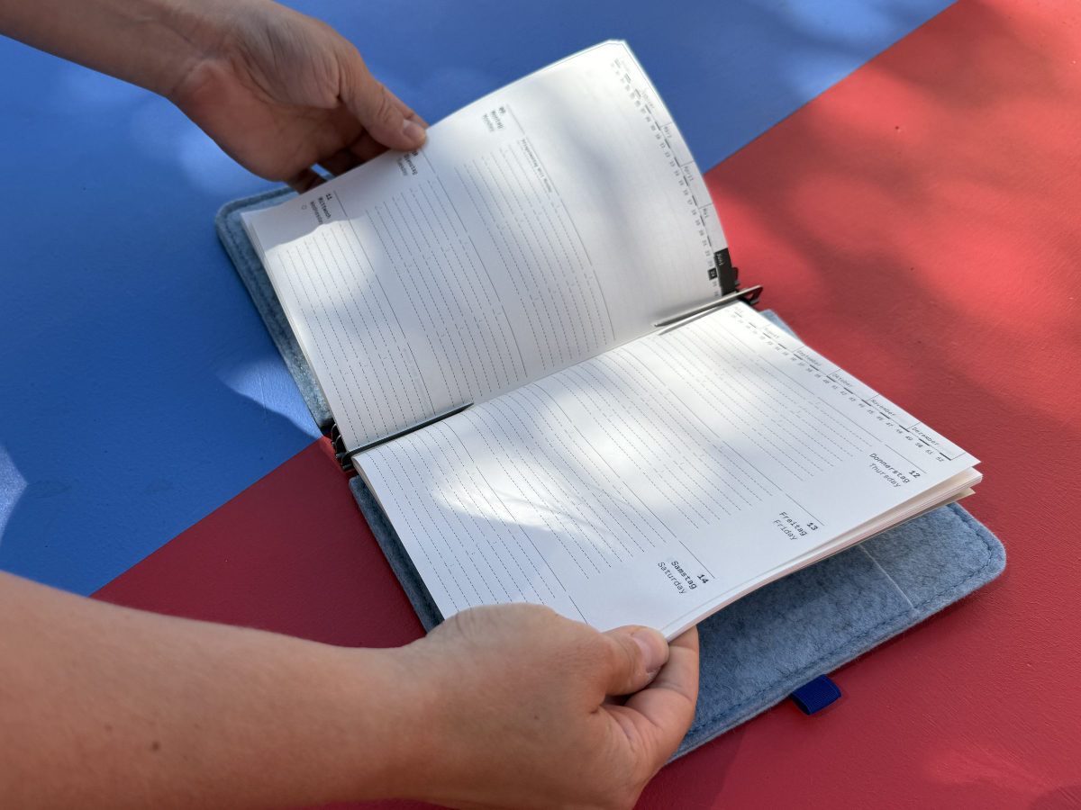 FORMAT M: Es ist das meistverkaufte Organizer-Format. Die Klammern fassen unsere Hefte im Format M, alle handelsüblichen DIN A5 Hefte sowie gefalzte,